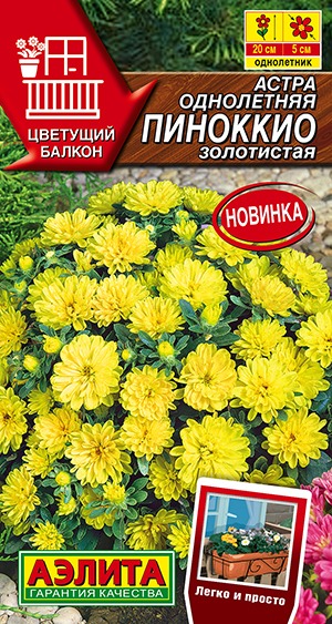 Карликовая неприхотливая обильноцветущая астра. Одна из немногих, которую можно успешно выращивать в балконных контейнерах и горшках и которая стабильно цветет до наступления устойчивых заморозков. Кустики высотой до 20 см, шаровидной формы, хорошо разветвленные, сплошь усыпаны полумахровыми маргаритковидными соцветиями диаметром около 5 см. Для интенсивного и щедрого цветения важно обеспечить растениям регулярное удобрение и умеренный водный режим без застоя влаги и пересыхания земляного кома. Серия «Пиноккио» отлично подходит для садовых вазонов и бордюрной культуры.