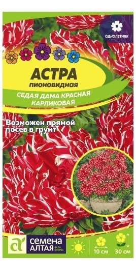 Уникальная низкорослая астра английской селекции. Карминно-красные пионовидные соцветия диаметром 8-10 см с ярким акцентом — белой продольной полосой на язычковых цветках. Куст компактный с прочными цветоносами, высотой 25-30 см. Необычайно эффектные низкорослые астры станут достойным украшением ваших балконов, вазонов, бордюров, цветников и патио-садиков.