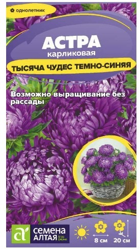Бордюрная низкорослая астра, одна из самых востребованных. Куст высотой до 20 см весь покрыт крупными махровыми цветками насыщенной фиолетово-синей окраски до 8 см диаметром. Идеально подходит для выращивания в горшечной культуре. Выращивается в смешанных цветниках, партерных клумбах, вазонах, широко используется в качестве бордюрной культуры.