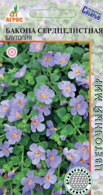 Бакопа – неприхотливое многолетнее растение, в условиях Сибири выращивается как однолетнее. Цветки одиночные пятилепестковые. Средний размер цветка до 2 см в диаметре. Форма соцветия – двугубые с короткой цветоножкой, формируются в пазухах листьев. Листья ланцетные, мелкие, цельные. Сутера ползучее растение, поэтому при выращивании на открытом грунте в каждом узле побега при контакте с грунтом образует корни. Бакопа предпочитает солнечные участки, при затенении побеги вытягиваются, цветение будет не таким обильным или может совсем прекратиться. Почва должна быть слабокислой. Торф и садовая земля в соотношении 1:1. Для формирования пышной формы рекомендуется прищипывать точки роста в молодом возрасте. Семена на рассаду высевают в марте-апреле. Посев поверхностный. Оптимальная температура для всходов 20-23°С и повышенная влажность. Всходы через 10-14 дней. Первая пикировка производится в стадии 1-2 настоящих листьев. Вторая с заглублением на один узел, чтобы бакопа устойчиво росла в субстрате. Бакопу можно выращивать как однолетнее почвопокровное растение, успешно задекорировать края небольшого водоема. Также бакопу подсаживают к штамбовым растениям. А для выращивания в вазонах и подвесных корзинах это одно из лучших растений.