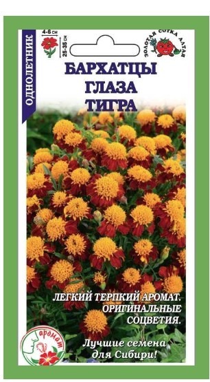 Очень декоративный сорт, цветущий обильно и долго. Кустик компактный, сильноветвистый, с ажурной темно-зеленой листвой. Оригинальные густо- махровые соцветия состоят из многочисленных трубчатых цветочков ярко-оранжевого цвета, обрамленных рядом темно-бордовых лепестков. Аромат легкий, терпкий. Используют во всех типах цветников, для оформления контейнеров в саду и на балконе. Отличное растение-защитник.