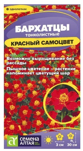 Обильноцветущие яркие тонколистные бархатцы. Растение сильноветвистое, формирует раскидистый кустик правильной куполовидной формы с множеством тонких побегов и изящными перисто-рассеченными листьями, в период цветения усыпанный яркими оранжево-красными с желтым центром простыми соцветиями-корзинками до 3 см в диаметре. В пору цветения растение похоже на цветущий шар. Бархатцы используют во всех типах цветников. Они великолепно заполняют промежутки между соседними растениями, а также украшают террасы, балконы и вазоны, хороши для создания бордюров, рабаток и клумб, великолепно смотрятся у подпорных стенок, кулис кустарников.