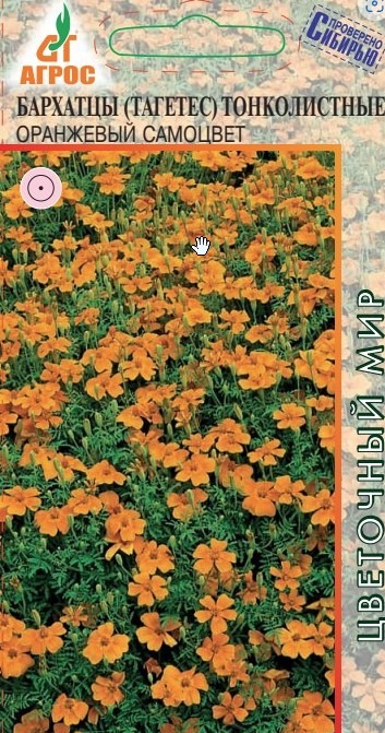 Однолетник с огромным количеством мелких ярких соцветий диаметром 2-3 см. Растение изящное, цветение длительное. Причем бутоны и молодые цветки находятся на периферии куста, а отцветшие – внутри, что придает растению постоянно свежий и аккуратный вид. Бархатцы тонколистные обладают своеобразным, сильным и приятным ароматом. Бархатцы неприхотливые, быстрорастущие, засухоустойчивые и светолюбивые растения, но выносят небольшое затенение, поэтому ими можно оформлять участки с северной стороны строений. Зацветают через 2 месяца после посева. Семена на рассаду высевают в начале апреля, но для более раннего цветения их можно посеять в марте. В грунт высаживают, когда минует угроза заморозков. Всходы появляются через 10-14 дней. Бархатцы гармонично выглядят в любых цветниках. Их можно использовать в контейнерах и корзинах, высаживать в балконные ящики. Кроме того, бархатцы оказывают санитарное воздействие на почву. Хорошо и долго стоят в срезке.