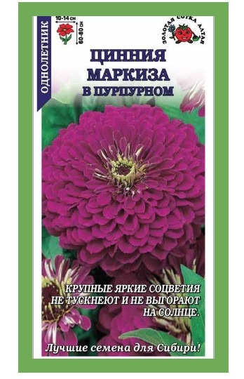 Великолепное растение с большим количеством крепких высоких цветоносов, не нуждающихся в подвязке. Крупные густомахровые соцветия красивого пурпурного цвета не выгорают на солнце и не тускнеют со временем. Цинния – идеальное растение для получения первоклассной срезки и создания ярких клумб. Цветет очень обильно и продолжительно.