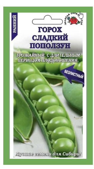 Раннеспелый урожайный сорт усатой (безлистной) формы. Период от всходов до созревания 53-55 дней. Растение высотой 70-85 см. Бобы зеленые, слабоизогнутые, средней длины. Горошек крупный, сочный и очень сладкий. Сорт рекомендуется для использования в свежем виде, консервирования и замораживания. Ценится за длительный период плодоношения и отличные вкусовые качества.