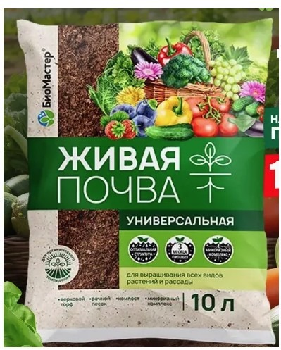 Грунт Универсал ЖИВАЯ ПОЧВА 10 л Биомастер