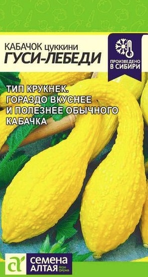 Оригинальный сорт кабачка типа «крукнек — сркученная шея». Среднеспелый (период от полных всходов до технической спелости 60-65 дней). Растение кустовое, компактное. Плоды удлиненно-цилиндрические, с утолщением на цветочном конце, бугорчатые, желтые, массой 1.5-2.0 кг. Мякоть светлая, сочная, очень нежная и вкусная. По содержанию питательных веществ, превосходит другие виды кабачков. Плоды жарят, сушат, варят, маринуют, фаршируют и консервируют. Благодаря своей низкой калорийности незаменим в диетическом питании.