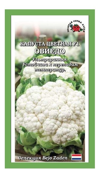 Ультраранний гибрид для весенне- летнего периода выращивания. Обладает хорошей устойчивостью к жаре и перепадам температур. Сбор урожая можно начинать уже через 65 дней от высадки рассады. Головки округло-плоской формы, беловатые, массой 0,5- 1,5 кг, частично покрытые, бугристые, плотные, с нежной текстурой и великолепными вкусовыми качествами. Широко используется в домашней кулинарии.