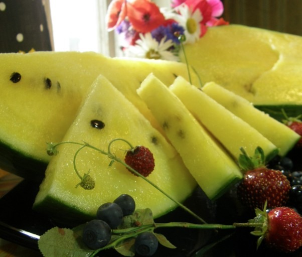 Хит! Очень ранний гибрид (65-70 дней). Плоды округло-овальные, весом 2.5-4 кг (привитые — около 5 кг) Кожура очень красивая, ажурная, привлекательного светло-зеленого цвета, очень тонкая! Мякоть сочная, хрустящая, безумно сладкая, отличных вкусовых качеств!