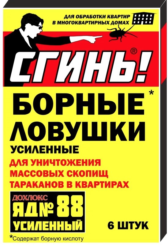 В состав ловушек входит настоящая борная кислота и фирменная пищевая приманка с ядом Дохлокс №88. Состав усиленный.