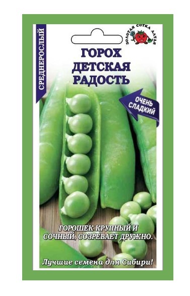 Сорт среднеранний, дружносозревающий. Растение среднерослое, в одном узле формирует по два длинных изогнутых боба средней ширины. Горошек мозговой, крупный, темно-зеленый, нежный, сочный и очень сладкий. Сорт рекомендуется для использования в свежем виде, прекрасно подходит для заморозки и консервирования.