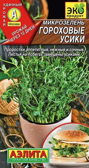 Эта необычная микрозелень состоит из усатого (безлисточкового) типа гороха. Отличается замещением листочков дополнительными усами. Проростки гороха, в отличие, от семян, – пища, которая легко усваивается организмом. Благодаря наличию минералов, микроэлементов, а также витаминов группы В – это отличный ингредиент диетических и вегетарианских блюд. Микрозелень обладает сочным, сладковатым вкусом. Употребляется в свежем виде, отлично подходит для добавления в салаты, для украшения блюд и десертов. Состав: горох овощной Безлисточковый.
