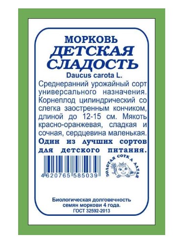 Среднеранний очень урожайный сорт, рекомендованный для использования в свежем виде и выращивания на пучковую продукцию. Корнеплоды цилиндрические со слегка заостренным кончиком, длиной до12-15 см. Сердцевина маленькая. Мякоть красно-оранжевая, сочная и сладкая, с высоким содержанием каротина. Один из лучших сортов для детского питания: пюре, свежие соки. Возможен подзимний сев.