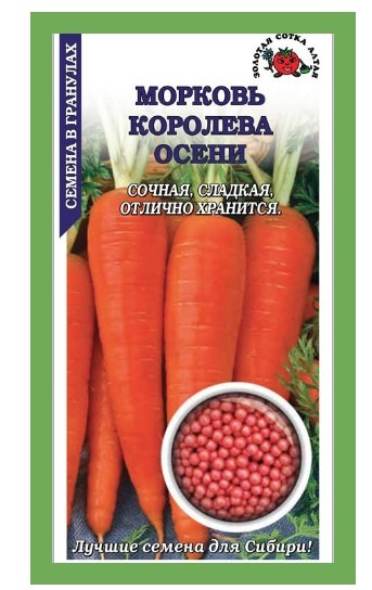 Позднеспелый урожайный сорт. Корнеплод оранжево-красный, удлиненно-конусовидный, длиной до 25 см, массой до 230 г. Мякоть сочная, нежная, очень сладкая. Сорт прекрасно подходит для потребления в свежем виде, переработки и длительного хранения