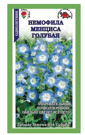 Очаровательное почвопокровное растение со стелющимися ветвистыми побегами, красивыми перистыми листочками и нежными небесно-голубыми цветочками с белым зевом, формирующее сплошной цветущий ковер. Немофила используется для создания бордюров, ковровых клумб и обсадки цветников, высаживается в различные контейнеры. Обильно цветет все лето.