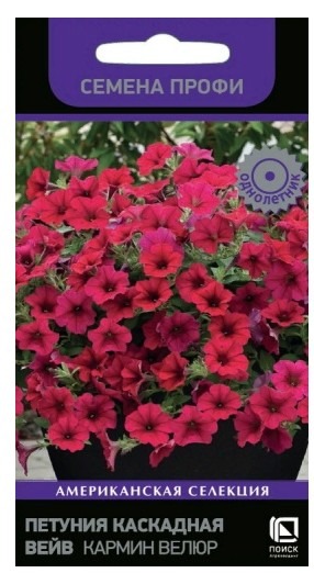Яркий каскад с крупными цветками! Ампельная петуния, которая может использоваться как почвопокровное растение за счет стелющегося габитуса. Длина побегов 90-120 см. Крупные цветки диаметром 5-6 см формируются по всей длине побега. Окраска — карминно-красная с бархатным отливом. Обильное и продолжительное цветение. Устойчива к непогоде. Подходит для ландшафтного дизайна и высадки в большие вазоны.