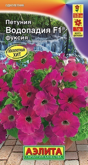Абсолютный хит! Серия многоцветковых петуний каскадного типа, которая отличается совершенно новой полуампельной формой. Уникальность этих гибридов в том, что новые цветоносные побеги образуются без прищипки в пазухах листьев в середине куста, не оставляя пустот. Растения формируют пышные кустики, высотой 15-25 см. Поникающие побеги длиной до 70 см полностью усыпаны яркими насыщенными цветками Ø 7 см и спускаются восхитительным водопадом. Гибриды устойчивы к повышенным температурам и неблагоприятным погодным условиям. Петунии Водопадия F1® наилучшим образом подходят для подвесных кашпо и корзин