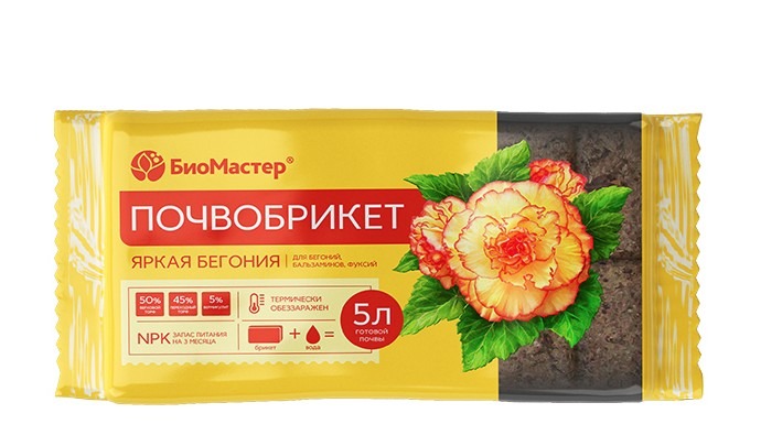 Почвобрикет Яркая бегония, 5л БиоМастер