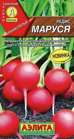 Неприхотливый раннеспелый сорт, ценится за высокое качество продукции. Урожай формируется дружно, за 18-20 дней от всходов. Рекомендуется для открытого грунта, парников и теплиц. Корнеплод округлый, с выпуклой головкой. Масса товарного корнеплода 20-25 г. Мякоть белая, плотная, сочная, хрустящая, вкус в меру острый. Молодые листочки весеннего урожая можно использовать в салатах и окрошках. Урожайность 2,5-3 кг/м 2 .