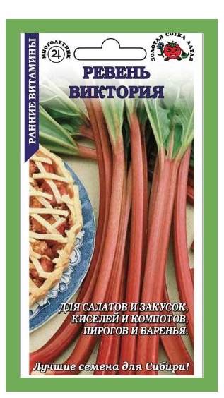 Сорт ранний (30-36 дней), урожайный. Листья волнистые по краю, зеленые. Черешки красно-розовые у основания, массой 25-80 г. Мякоть зеленая, мясистая, сочная и нежная, приятного кисловатого вкуса. Используют в свежем виде, для приготовления первых и вторых блюд, салатов и закусок; готовят кисели, компоты, варенья и начинки для пирогов.