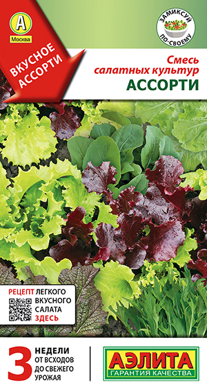 Состав: салат (Lactuca sativaL.) Азарт, Кармен; горчица сарептская (салатная) (Brassica juncea (L.) Czern.) Витамин®, Волнушка; индау (Eruca sativa Mil.) Диковина; капуста китайская (Brassica chinensis L.) Ласточка; капуста японская (Brassica rapa L. subsp. nipposinica (L. H. Bailey) Hanelt) Мизуна.