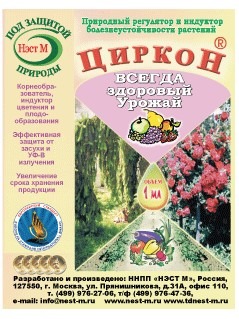 ЦИРКОН — многофункциональное соединение широкого спектра действия. Природный регулятор негормонального происхождения, получен из Эхинацей пурпурной. Его основу составляет комплекс гидроксикоричных кислот и их производных, которые стимулируют ростовые процессы, защищают от стрессов и составляют систему жизнеобеспечения растений.