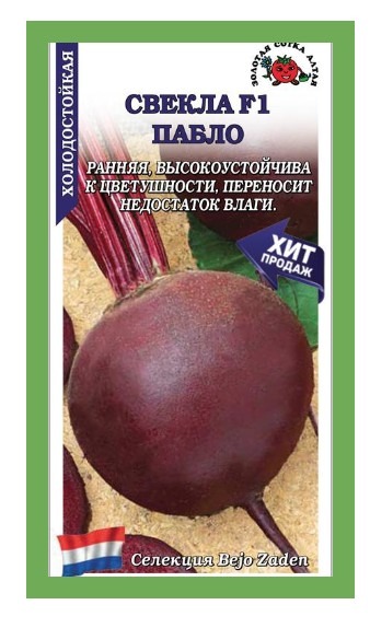 Высокоурожайный гибрид раннего срока созревания с выравненными корнеплодами. От всходов до сбора урожая 90-108 дней. Корнеплоды темно-красные, округлые, массой 220-300 г. Мякоть темно-красная с фиолетовым оттенком, нежная и сочная, не имеет разделений на кольцевые зоны, обладает великолепными вкусовыми качествами. Гибрид холодостойкий, переносит недостаток влаги, отличается высокой устойчивостью к цветушности. Подходит для всех видов переработки и длительного хранения.