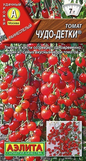 Высокоурожайный сорт черри-томата сверхраннего срока созревания. От всходов до первого сбора 95-105 дней. Для пленочных теплиц и открытого грунта. Растения индетерминантные, высотой 1,6-1,8 м. Плоды идеально выравнены по размеру, массой 5-7 г. Томаты очень сладкие, сочные и ароматные. Подходят для консервирования в небольших банках. Сорт устойчив к бурой пятнистости, ВТМ, корневой и вершинной гнилям. Урожайность в теплице – 8-9 кг/м2.