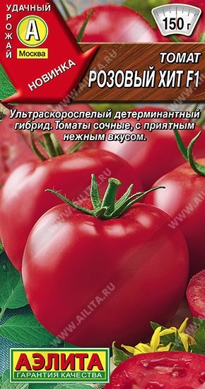 Ультраскороспелый гибрид с высоким потенциалом урожайности. Рекомендуется для выращивания в плёночных теплицах и открытом грунте. Период от всходов до начала созревания 85-95 дней. Растения детерминантные, в теплице высотой 100-110 см. Плоды массой 140-150 г собраны в кисти по 6-7 штук. Мякоть сочная, с насыщенным и приятным вкусом. Великолепно подходит для свежих салатов, любой кулинарной переработки и зимних заготовок. Гибрид устойчив к альтернариозу, фитофторозу, ВТМ. Урожайность в теплице 17-18 кг/м 2 .