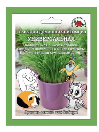 Натуральная пищевая добавка к рациону домашних питомцев: коты и кошки, попугаи, кролики, хомяки, морские свинки. Свежепророщенная трава содержит витамины, микроэлементы и балластные вещества, необходимые животным для поддержания здоровья, улучшает процесс пищеварения и очищает желудок. К тому же постоянный доступ домашних любимцев к свежей зелени поможет защитить от них многие комнатные растения. Состав: 50% — Овес; 50% — Райграс.